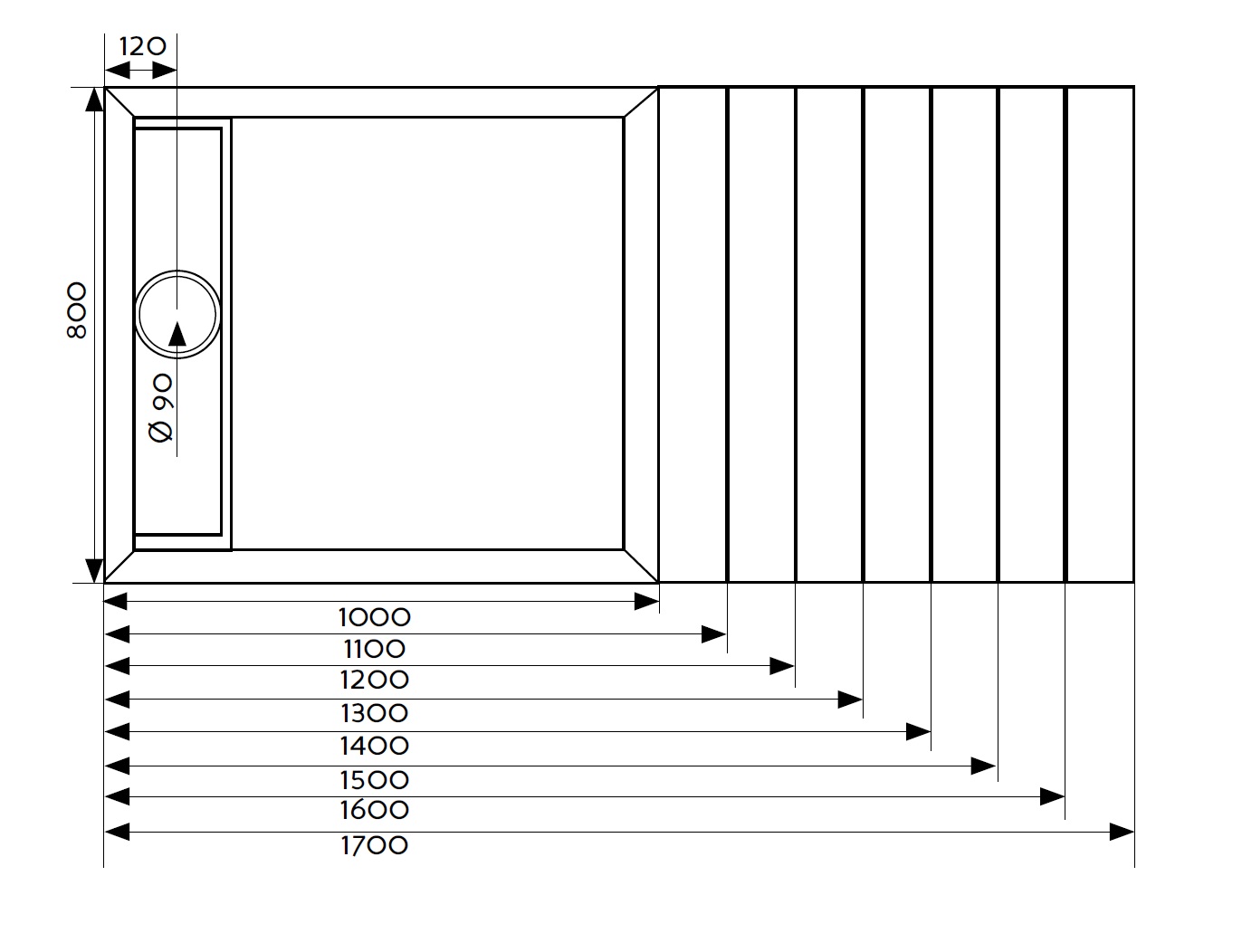 - Siphon sitzt immer Mittig kleinere Seite der Wanne