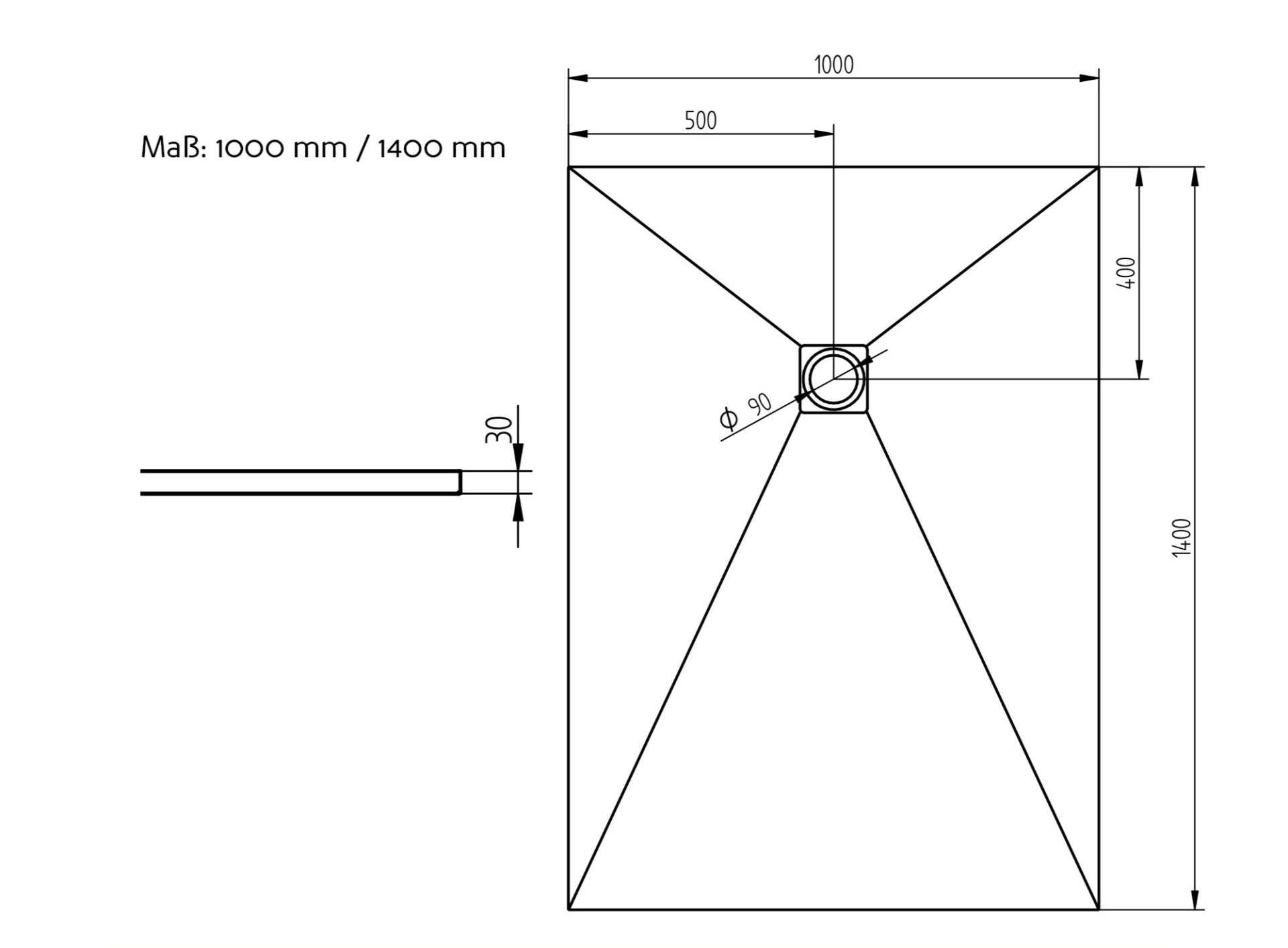 Duschwanne Mineralguss 140 x 100 - ebenerdig barrierefrei
