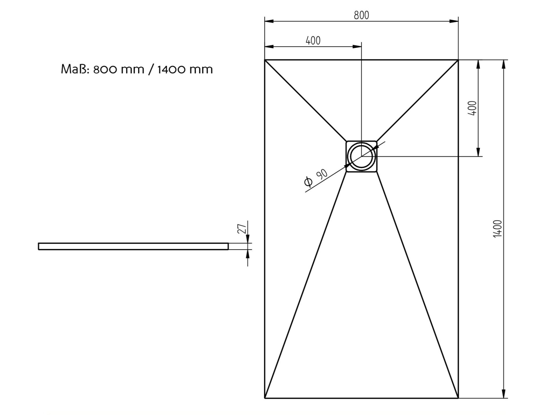 Duschwanne Mineralguss 140 x 80 x 1,5 cm