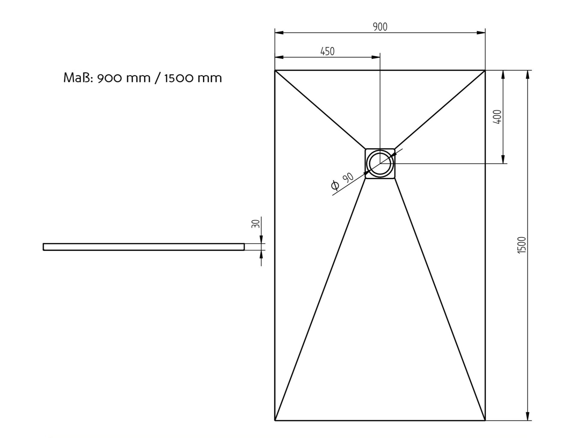 Duschwanne Mineralguss 150 x 90 x 1,5 cm