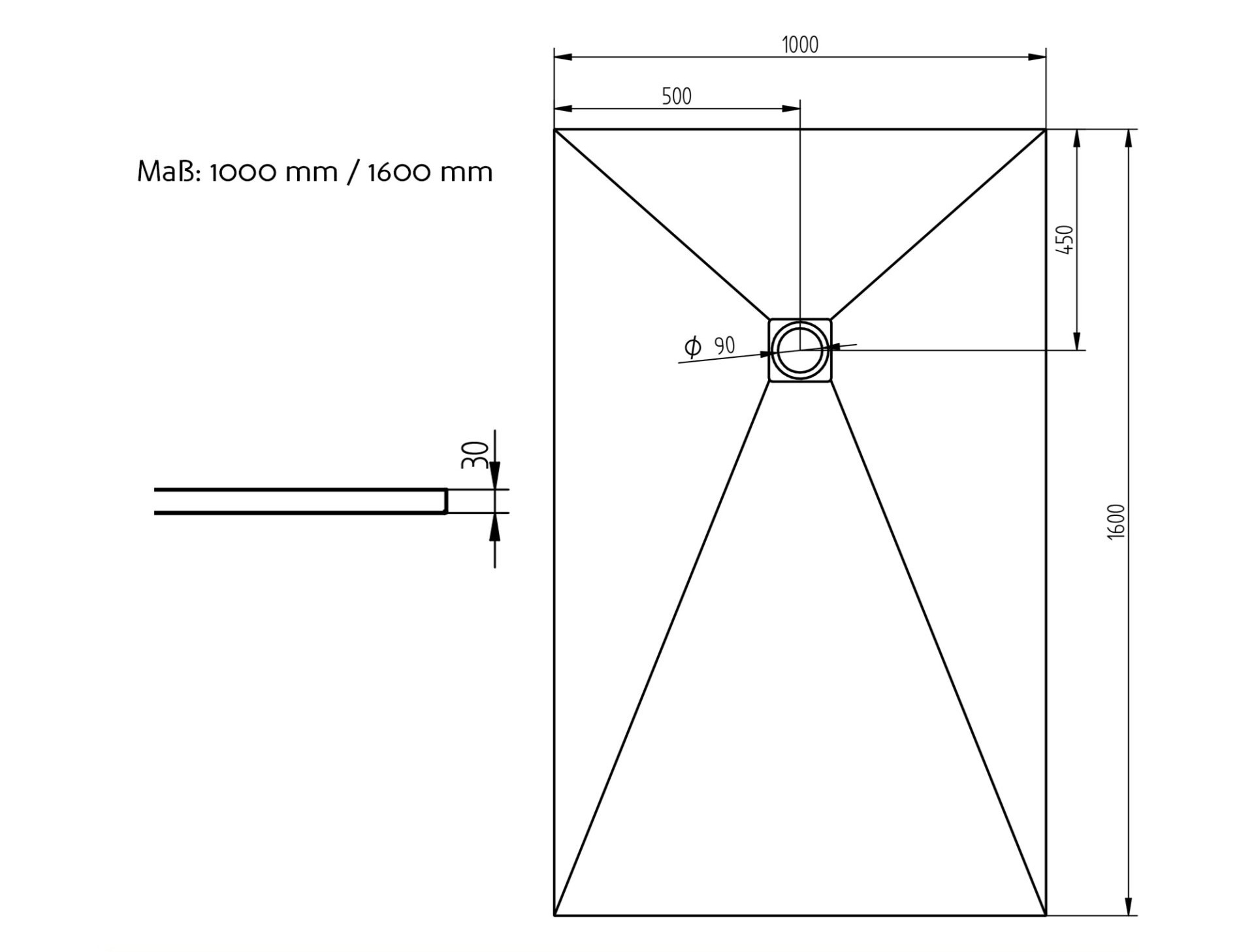 Duschwanne Mineralguss 160 x 100 x 1,5 cm