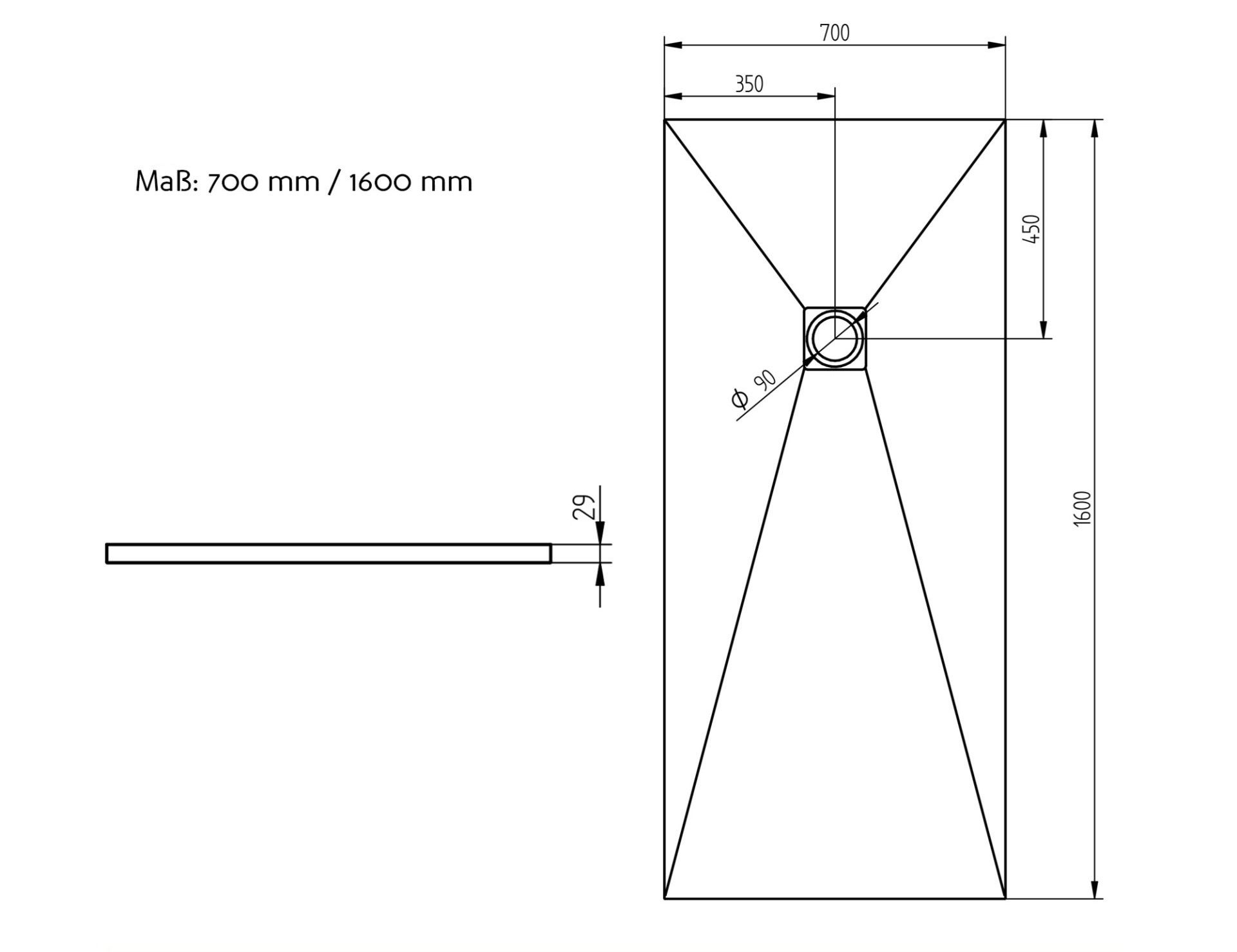 Duschwanne Mineralguss 160 x 70 - ebenerdig barrierefrei