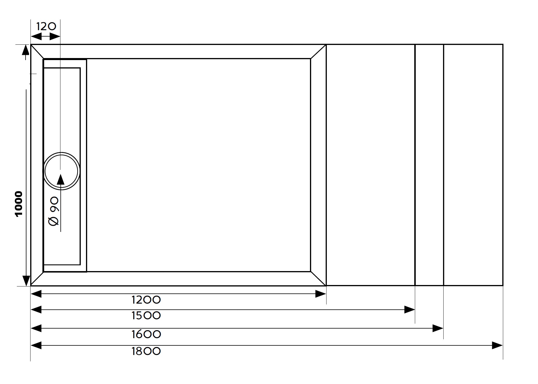 Duschtasse Mineralguss 180 x 100 x 1,5 cm
