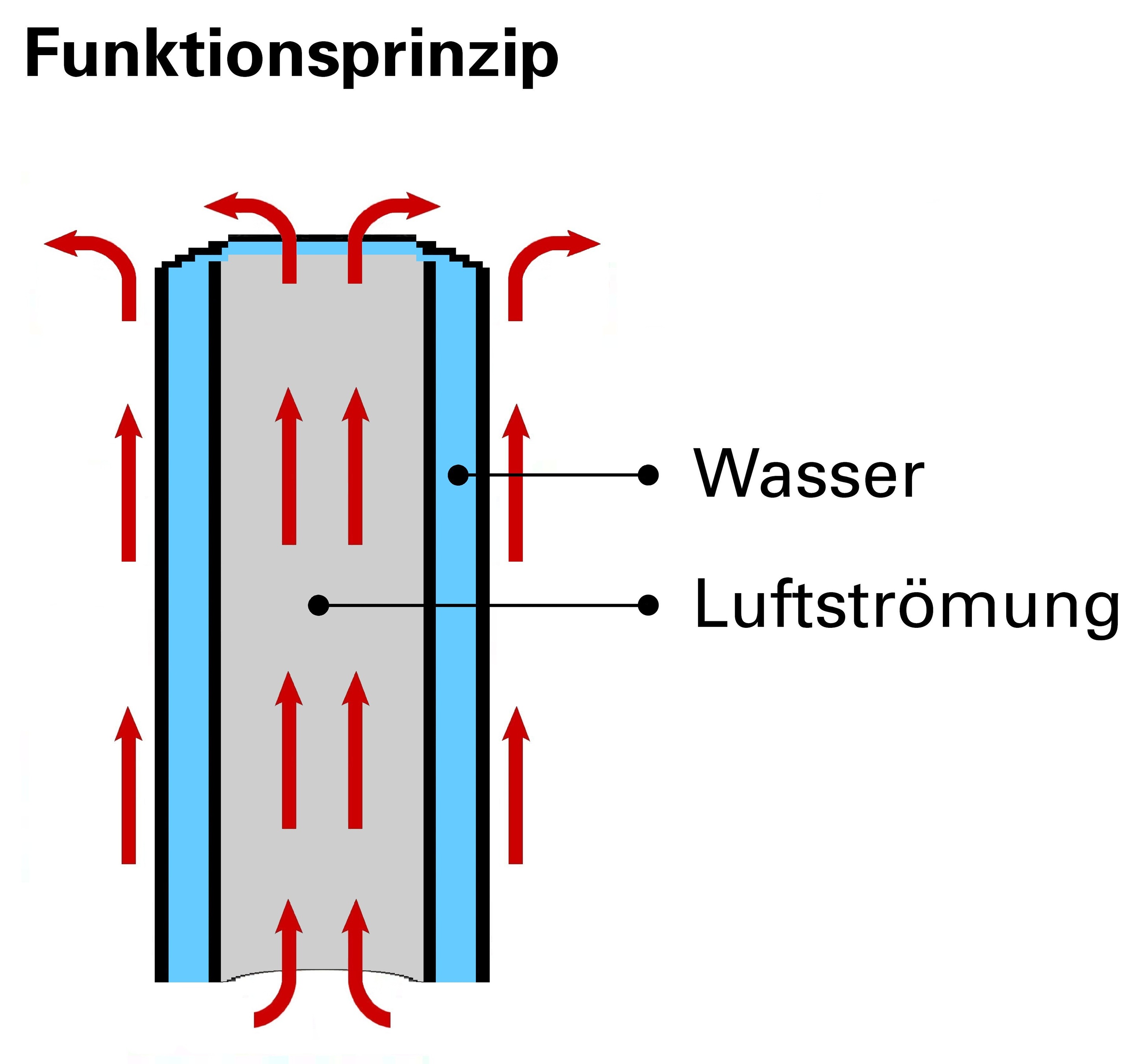 Material: mit senkrechten geraden wirbelstromgeprüften Präzisionsstahlrohren in Radiatorengüte in einer „Rohr in Rohr“ – Konstruktion, mit 60 x 60 x 1,5 mm Außenrohren und 50 x 50 x 1,5 mm mit den Außenrohren an den beiden Enden verschweißten Innenrohren. Die Außenrohre sind auf waagrechte wirbelstromgeprüfte Sammelrohre Ø 30 x 1,5 mm in Radiatorengüte aufgesetzt.